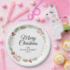 Elegant Floral Christmas Wreath Family Custom Name Pappteller