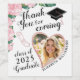 Erstellen Sie einzigartige personalisierte Blumenbezeichnungen Dankeschön Flaschenetiketten für die Graduation Party 2025 und Favoriten mit einem eleganten Design, das ein Herz-Form-Foto, den Namen und das Jahr des Graduates, mit rosa Rosen und Monstera-Blätter, Gradmütze und Diplomabbildungen verziert. Verwenden Sie die Vorlage, um den Namen und das Jahr Ihres Grad einzugeben und ein Bild vor der Bestellung hochzuladen. Dieses Design ist auf einem weißen Hintergrund.
