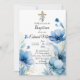 Elegant floral Dusty Blue Baptisse Einladung
