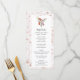 Elegante florale Eukalyptus Hochzeitsmenükarten für Ihren besondere Anlass! Das Design passt zur Erholung der Floral Dance Collection. Aquarellfarbener Blumenstrauß aus roten und lila Pansien-Blume mit dunkelgrünen Blattrahmen oben auf den Details Ihrer Karte (personalisieren Sie Ihre Angaben zu Vorspeisen, Vorspeisen und Desserts in eleganter Schrift), kehren Sie die Karte um, um ein rot-rosa Terracotta-Muster Hintergrund zu zeigen.