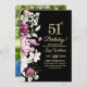 Elegant Floral Gold 51 Birthday Photo Einladung