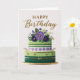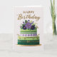 Elegant Floral Green Purple Gold Birthday Cake Karte