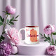 "Celebrate the beauty of your name or make an unforgettable gift with this luxurious mug that combines elegance with a personal touch. The design features a large 'A' decorated with delicate spring flowers with the name 'Mariam' in a modern and attractive font.