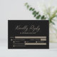 Eine stilvolle RSVP-Antwortkarte mit schwarzblühenden Blumen, mit der Sie Ihre Gäste einladen können, ihren Besuch, ihre Speisen-Vorlieben und, falls vorhanden, ihre Diätwünsche an Ihrem speziellen Tag zu bestätigen.