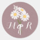 Elegant Floral White Daisies Monogram Wedding Runder Aufkleber