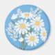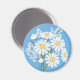 Elegant Floral White Daisies on Blue Magnet