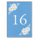 Elegant Floral White Daisies on Blue Wedding Tischnummer