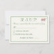 Design front features an elegant heading displayed at top in a lovely forest green color displayed against a pale-cream background. The images of the Sacred and Immaculate Hearts of Jesus and Mary are pictured at right. Your text is featured in the traditional format for a Catholic wedding response card. Entire design is framed with an elegant matching border.