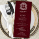 Elegant Formal Monogram Crest Burgundy Wedding Menükarte
