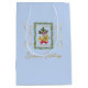 Elegant French Horn Christmas Light Blue Gift Bag Mittlere Geschenktüte
