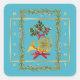 Elegant French Horn Christmas Turquoise Quadratischer Aufkleber