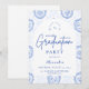 An elegant graduation celebration design featuring a delicate blue toile floral border inspired by classic European porcelain and vintage botanical prints. The intricate florals frame a clean arched center panel, creating a refined and timeless composition that highlights the graduate’s name and event details beautifully. Soft blue tones against a crisp ivory background give the design a sophisticated yet celebratory feel. Perfect for a stylish graduation gathering with a classic, romantic aesthetic.