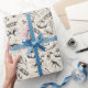 Dieses individuell gestaltete Friendsgiving-Verpackungspapier präsentiert handgefertigte Designs von Nathalie Portet mit einer Herbsternte-Szene aus Kürbissen, Kürbissen, Akkorden und Herbstblättern, illustriert in schwarzer Tinte vor einem eleganten cremefarbenen Hintergrund. Ein Rundrahmen enthält einen "Happy Friendsgiving" Gruß und die festlichen Worte "Dankbar, Dankbar, Gesegnet". Personalisieren Sie mit Ihrem Namen.