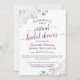 Selbst wenn man nicht zusammen sein kann, kann man trotzdem gemeinsam feiern. Wenn Sie also kein Brautparty persönlich haben können, warum nehmen Sie es nicht online? Diese Einladung enthält ein lila, weißes und graues Cassis-Motiv mit schillernd silbernen Imitaten-Folienkornchen und laky Script-Kalligraphie.