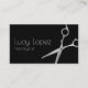 Das moderne Design der Visitenkarten-Visitenkarte zeichnet sich durch Imitate mit silberner Schere, eleganten Kalligrafien-Schriftart und schwarzem Hintergrund aus.