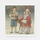 Festliche Servietten mit Schwerdtfegers Vintager Winterszene eines Mädchens, eines Jungen und eines Hirsches im Schneewald. Fügen Sie frohe Weihnachten mit Ihrem Familiennamen für ein einzigartiges und elegantes Detail auf dem Urlaubstisch hinzu.