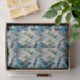 An abstract diamond pattern featuring a blue, green, and gold frozen winter landscape.