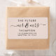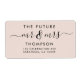 Elegante und raffinierte Future Mr. und Mrs. adressieren das Versandlabel mit prächtiger Skriptkalligraphie, ergänzt durch minimale, moderne Typografie in einem rot-rosa Hintergrund.