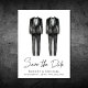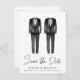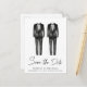 Elegante und schicke keine Foto-Homosexuelle Hochzeit speichern Sie das Datum Ankündigung Postkarte mit Wasserfarben von zwei Tuxedos und "Save the Date" in einem stilvollen Skript. Fügen Sie Ihre Namen, Hochzeitstag und Ort in der modernen Typografie. Auf der Rückseite, personalisieren Sie Ihre Ankündigung Datum freihalten detaillierter.