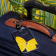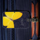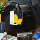 Gelber Schmetterling auf einem schwarzen Damast Muster Gepäckanhänger. Personalisieren Sie dieses elegante Gepäckanhänger mit Ihrem Namen.