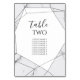 Dieses Design besticht durch elegantes Marmor und geometrische Muster. Die geometrischen Muster überlagern die natürlichen, einfachen Marmorlinien. Die Kombination aus Grautönen, Schwarz und Weiß schafft einen eleganten, trendigen und schicken Stil. Elegantes Hochzeitsdesign mit modernen Elementen in der Tischnummer. Die moderne Gestaltung der Typografie verleiht ihr einen besonderen Stil. Auch die passenden Hochzeitseinladungen und andere Schreibwaren sind verfügbar. Passen Sie die Anzahl an und erwerben Sie jede Tabellennummer individuell, je nachdem, wie viele Tischnummern Sie benötigen.