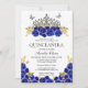 Elegant Glam Blue Floral Silver Tiara Quinceanera Einladung