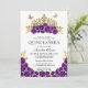 Elegant Glam Lila Floral Gold Tiara Quinceanera Einladung