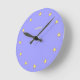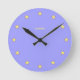 Modern elegant glittering stars on blue Wall Clock. Sunrise text can be personalized.