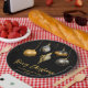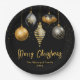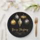 Add a touch of holiday glamour to your festive table with this black and gold Christmas napkin. Featuring five hanging ornaments - each with a unique design including glittering stars, snowflakes and florals - this layout blends classic with modern elegance. Set against a rich black background with golden sparkles, it's perfect for upscale gatherings, winter parties, or seasonal celebrations.