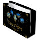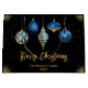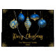 Celebrate the season in style with this elegant black Christmas gift bag featuring five royal blue and gold hanging ornaments, scattered golden stars, and customizable text. Add your family name and year for a personal touch that elevates any holiday gift. Perfect for festive packaging, party favors, or under-the-tree presentation.