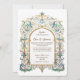 Elegant Gold and Blue Wedding Vintage Flourishes Einladung
