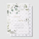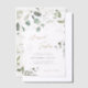 Design feature greenery eucalyptus watercolor with floral gold glitter elements. Using elegant calligraphy font in gold color for the name of the bride and groom that makes it stand-out.