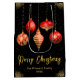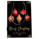 Celebrate the season in style with this elegant black Christmas gift bag featuring five red and gold hanging ornaments, scattered golden stars, and customizable text. Add your family name and year for a personal touch that elevates any holiday gift. Perfect for festive packaging, party favors, or under-the-tree presentation.