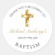 Danke an die Familie, die Liebsten und die Freunde dieser eleganten Gold Taufe Danke an den Sticker. Dieses einfache, aber klassische Design verfügt über ein goldenes Kreuz vor einem weißen Hintergrund mit beliebter Typografie, die leicht lesbar ist. Personalisieren Sie den Schriftart und die Farbe und ändern Sie den Text und das Datum, um Ihre Bedürfnisse Anzug.
