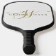 Ein elegantes, modernes Pickle-Ball-Paddel mit einem schwarzen Monogramm mit einem dramatischen Skript, das mit Swashes und Ihrem vollen Namen beginnt. Die Seite des Paddels ist ein weißer Hintergrund mit schwarzen Kanten und Griff. Einfache Eleganz. Der Hintergrund hat einen visuell strukturierten Effekt.