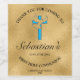 Elegant Gold Blue Cross Dove 1. Kommunion Weinetikett