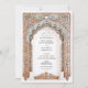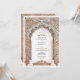 Diese luxuriöse Hochzeitseinladung zeigt einen atemberaubenden goldenen und blauen filigranen Bogen, inspiriert von der faszinierenden Architektur des Palastes und der barocken Details. Die wunderschön geprägten Blumenmuster und Skulpturenmuster verleihen dem Ganzen einen zeitlosen Charme, der sich perfekt für elegante, traditionelle und Hochzeiten in Urlaubsort eignet. Die Kombination aus sanften Blautönen und aufwändigen Goldverzierungen verleiht der Einladung eine raffinierte Anziehungskraft, die sich ideal für Paare eignet, die ein opulentes und künstlerisches Hochzeitsthema suchen. Die raffinierte Typografie fügt sich nahtlos in den verzierten Rahmen ein und sorgt für ein atemberaubendes und unvergessliches Hochzeitspapierdesign.