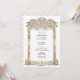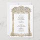 Diese luxuriöse Hochzeitseinladung zeigt einen atemberaubenden goldenen und blauen filigranen Bogen, inspiriert von der faszinierenden Architektur des Palastes und der barocken Details. Die wunderschön geprägten Blumenmuster und Skulpturenmuster verleihen dem Ganzen einen zeitlosen Charme, der sich perfekt für elegante, traditionelle und Hochzeiten in Urlaubsort eignet. Die Kombination aus sanften Blautönen und aufwändigen Goldverzierungen verleiht der Einladung eine raffinierte Anziehungskraft, die sich ideal für Paare eignet, die ein opulentes und künstlerisches Hochzeitsthema suchen. Die raffinierte Typografie fügt sich nahtlos in den verzierten Rahmen ein und sorgt für ein atemberaubendes und unvergessliches Hochzeitspapierdesign.