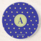 Elegant Gold & Blue Star Pattern Monogram Getränkeuntersetzer