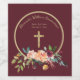 Elegant Gold Burgundy Floral Baby Christening Weinetikett