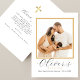 Baby´s baptism card, featuring elegant script and classic typography, is perfect for a family that welcomed their new baby! Write your baby´s name in elegant script and add your favourite family photo. A beautiful, elegant design features a fully customizable photo in a faux gold, neutral frame. The reverse features a faux gold cross with a thank you greeting and a custom message. Press the "personalization" button to replace the picture and enter your information. This card is versatile and can also fit other celebrations!