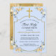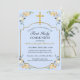 Elegant Gold Cross Blue Floral 1. Heilige Kommune Einladung
