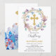 Elegant Gold Cross Christening Floral Einladung