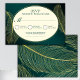 This elegant RSVP card features a deep green background with refined gold feather artwork and minimalist gold border detailing, creating a luxurious and timeless stationery design. The layout includes space for guest name entry, attendance confirmation options, number attending, and dietary requirement notes, making it ideal for weddings, anniversaries, formal dinners, engagement celebrations, gala events, birthday receptions, bridal showers, corporate banquets, and other sophisticated occasions. Its clean structure and premium color combination make it suitable for both personal and professional event stationery collections