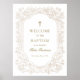 Create a warm first impression with this floral Baptism welcome sign, adorned with gold line-art blooms and a gold cross. Ideal for Christian celebrations, this editable template pairs perfectly with gold, blush, and neutral event themes. Personalize your details online and print locally for a beautiful, custom display by Adore Paper Co.