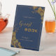 Elegant Gold Floral Navy Blue Gästebuchsigne Sockelschild