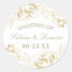 Elegant and romantic round wedding favor sticker design feature a border of peony flowers and color scheme of champagne, antike gold and white. Personalize the custom text with a monogram of the bride and groom names and wedding date.
