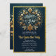 This New Year's Eve party invitation is designed for a glamorous party venue. The digital artwork features an elegant gold flourish design with gold sparkle on a midnight blue background which serves as a stunning contrast. This is a template invitation, allowing you to easily add your details or customize the image to suit your specific needs. AI-generated artwork with design direction by Susang6.