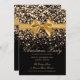 Modern Christmas Party / Company / Dinner Party Invitation template with Gold Midnight Glam Sparkly Lights and a ribbon bow.