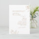 Moderne Einladung. Hochzeitseinladung. Gold und Weiß. Es wurden keine Eltern aufgeführt. Gold Linie Kunst Blumen und Stiele. Goldverglasung zurück.